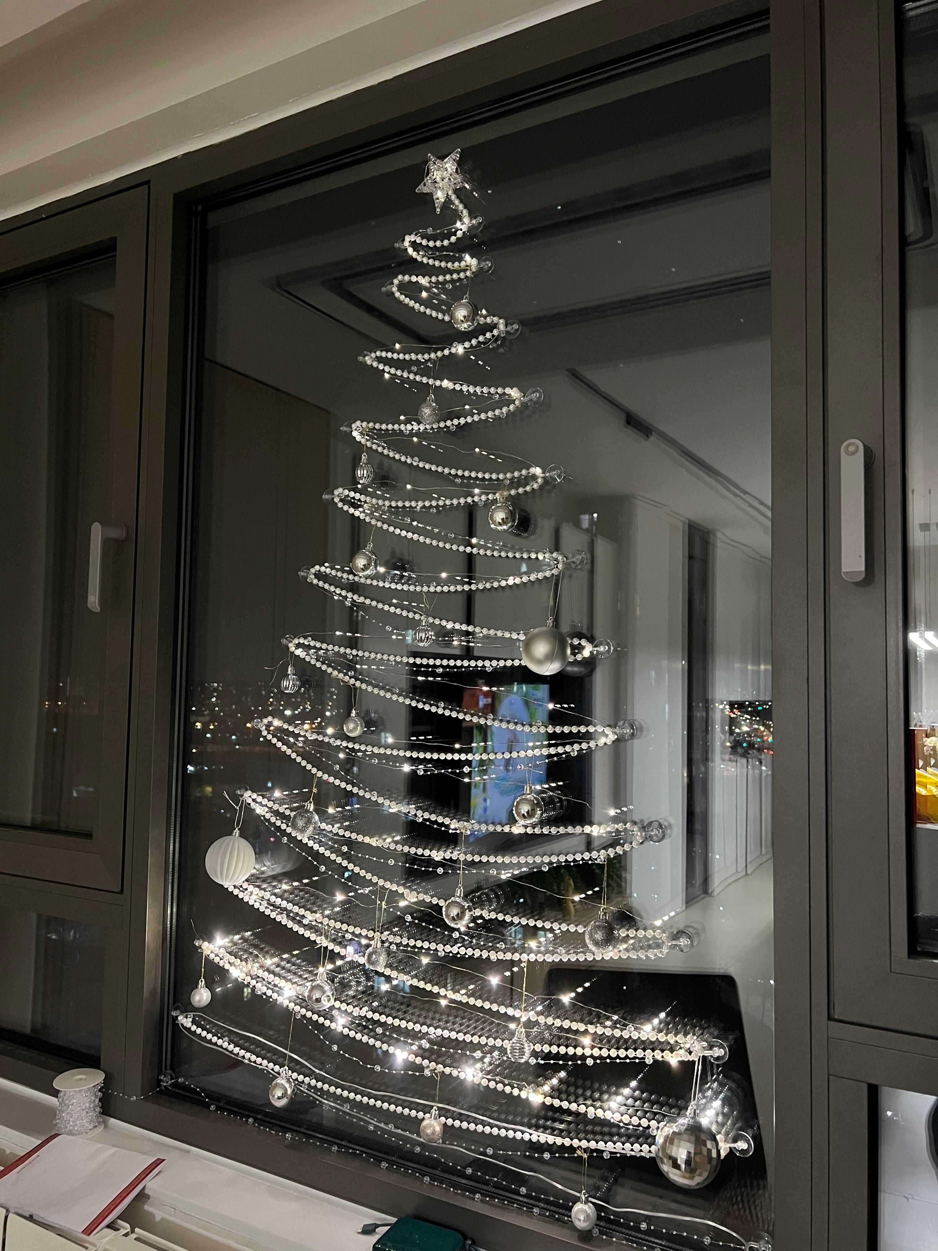 玻璃上的珍珠聖誕樹!免釘免膠~貼上窗戶瞬間高級感滿分✨▸ 歐式珍珠光澤:日夜皆美,開燈後折射柔和光暈▸ 可重複使用:拆下收納明年繼續用,環保又省錢