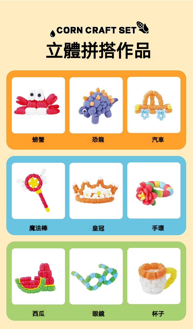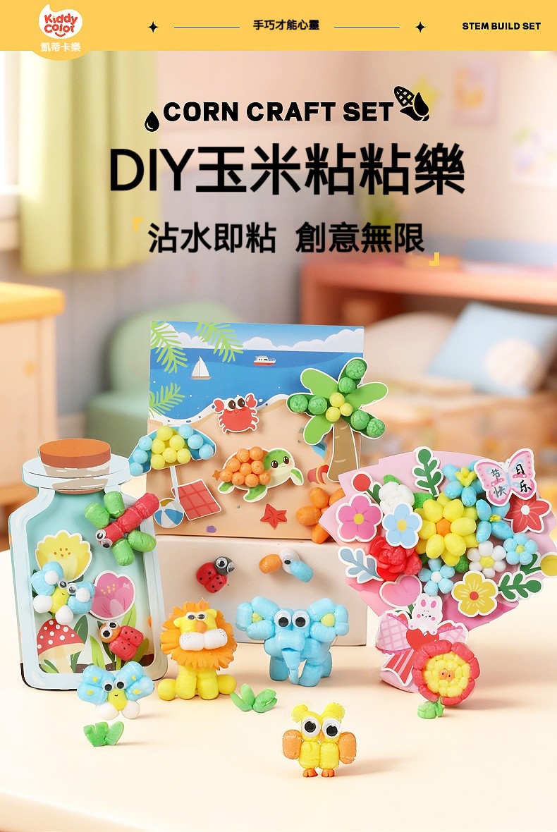 魔法玉米粒~沾水就黏真神奇!560粒撚出童話世界,囡仔撚甲笑咪咪✨✅小肌肉訓練:撚粒、按壓練指力✅立體空間感:從2D到3D自然升級✅色彩敏銳度:混搭漸層學配色