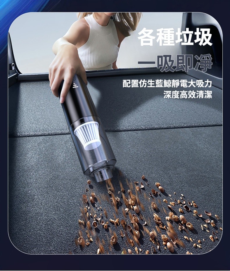 鯨吞級車載吸塵器!3分鐘清完整台車~吸力猛卻靜音,連餅乾屑都逃不掉✨✅ 鯨吞級吸力✅ HEPA可水洗濾網✅ 4合1專業吸頭✅ 車家雙棲