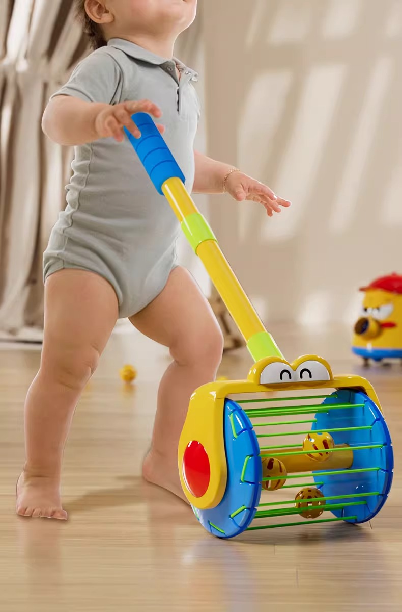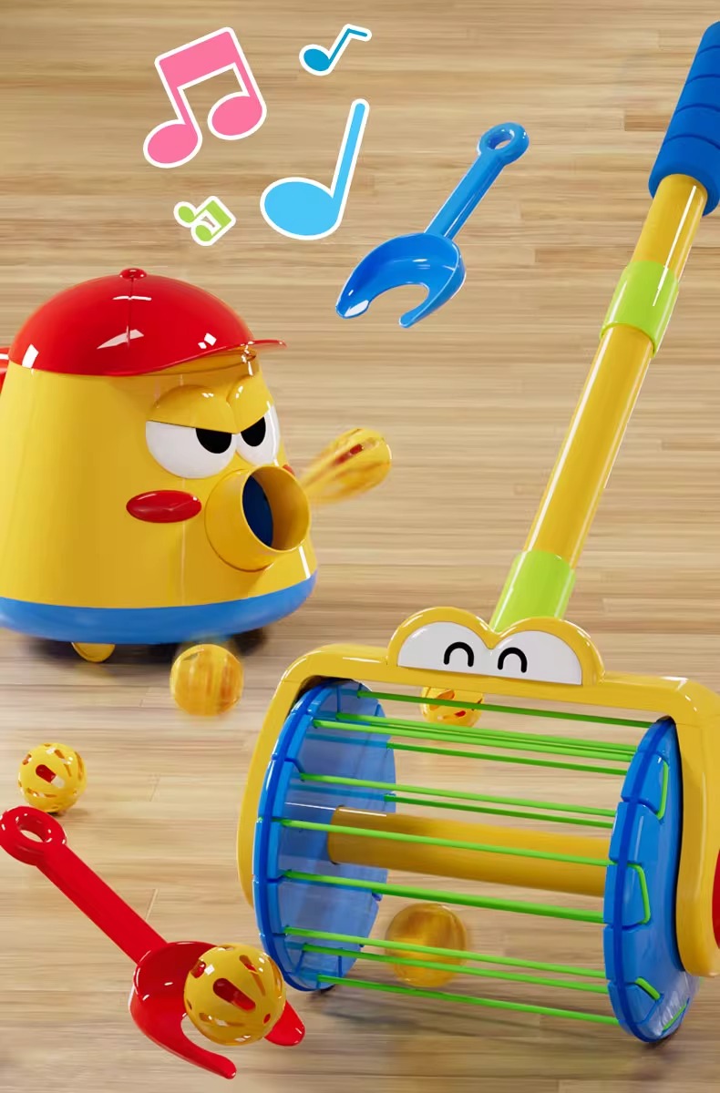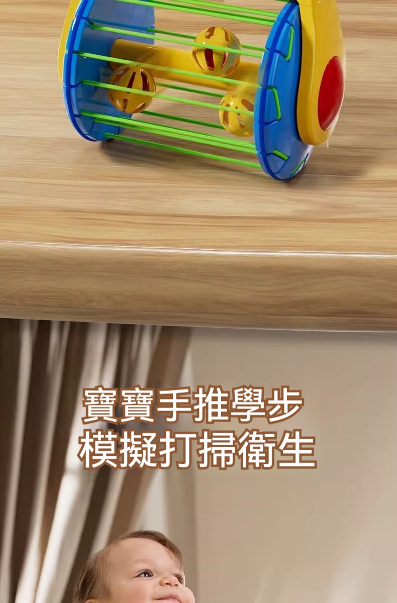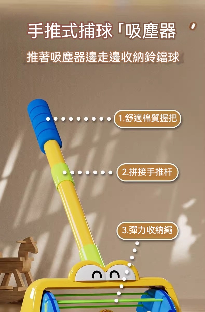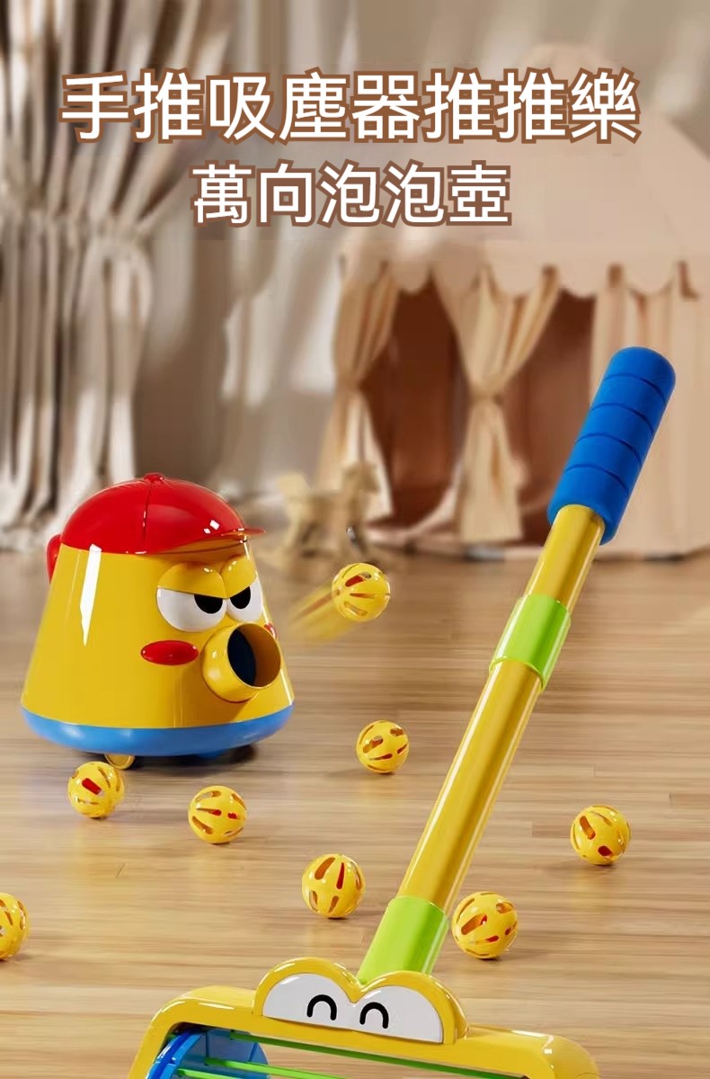 「手推吸塵器泡泡樂」推著走噴彩球!360°萬向旋轉+鈴鐺聲響,學步期寶寶的魔法清潔隊