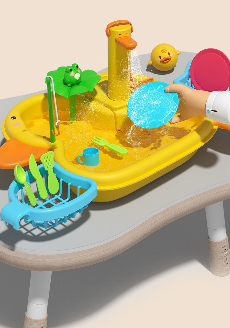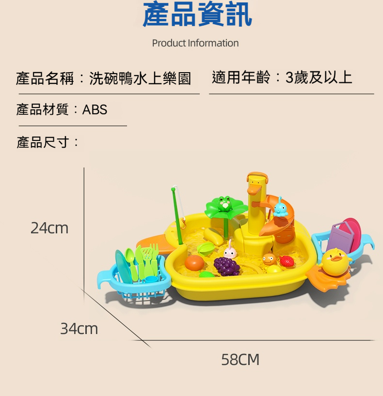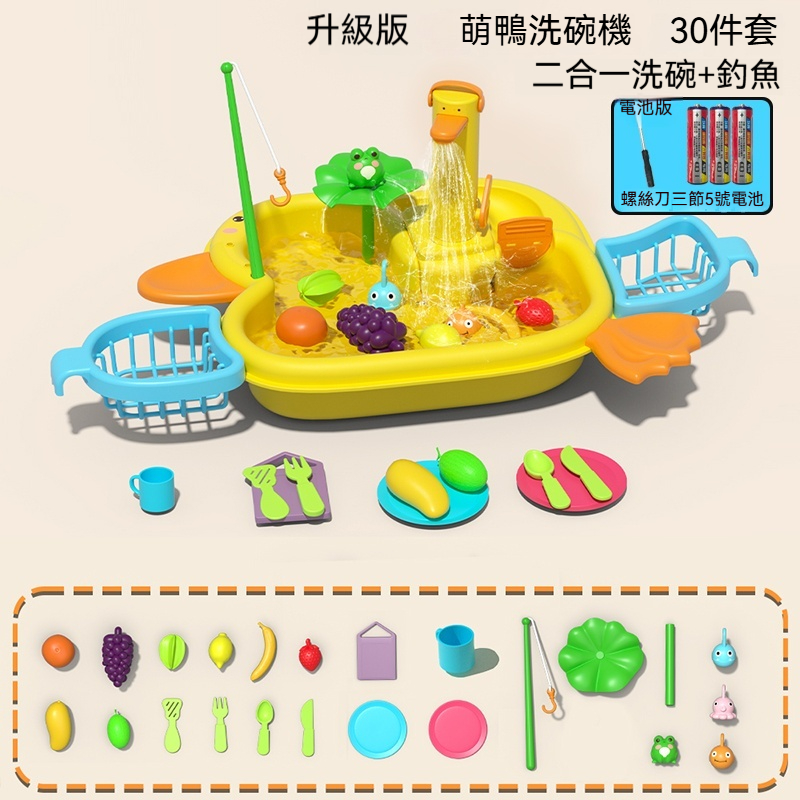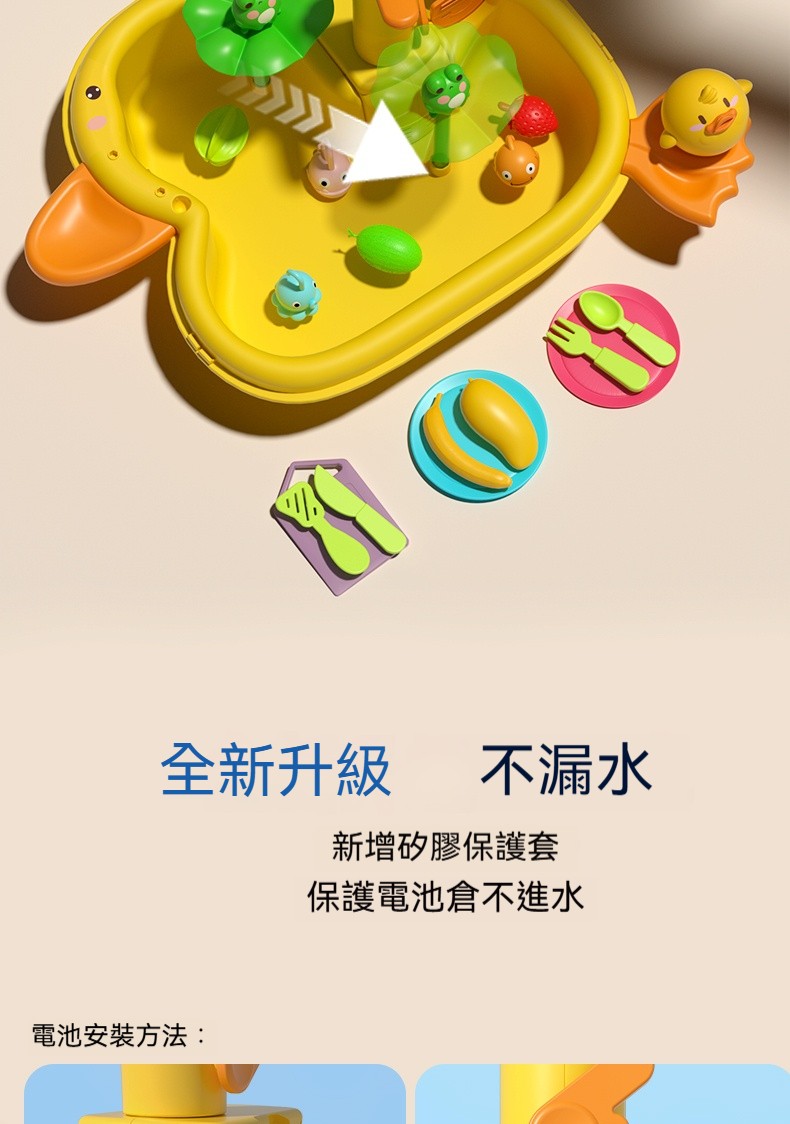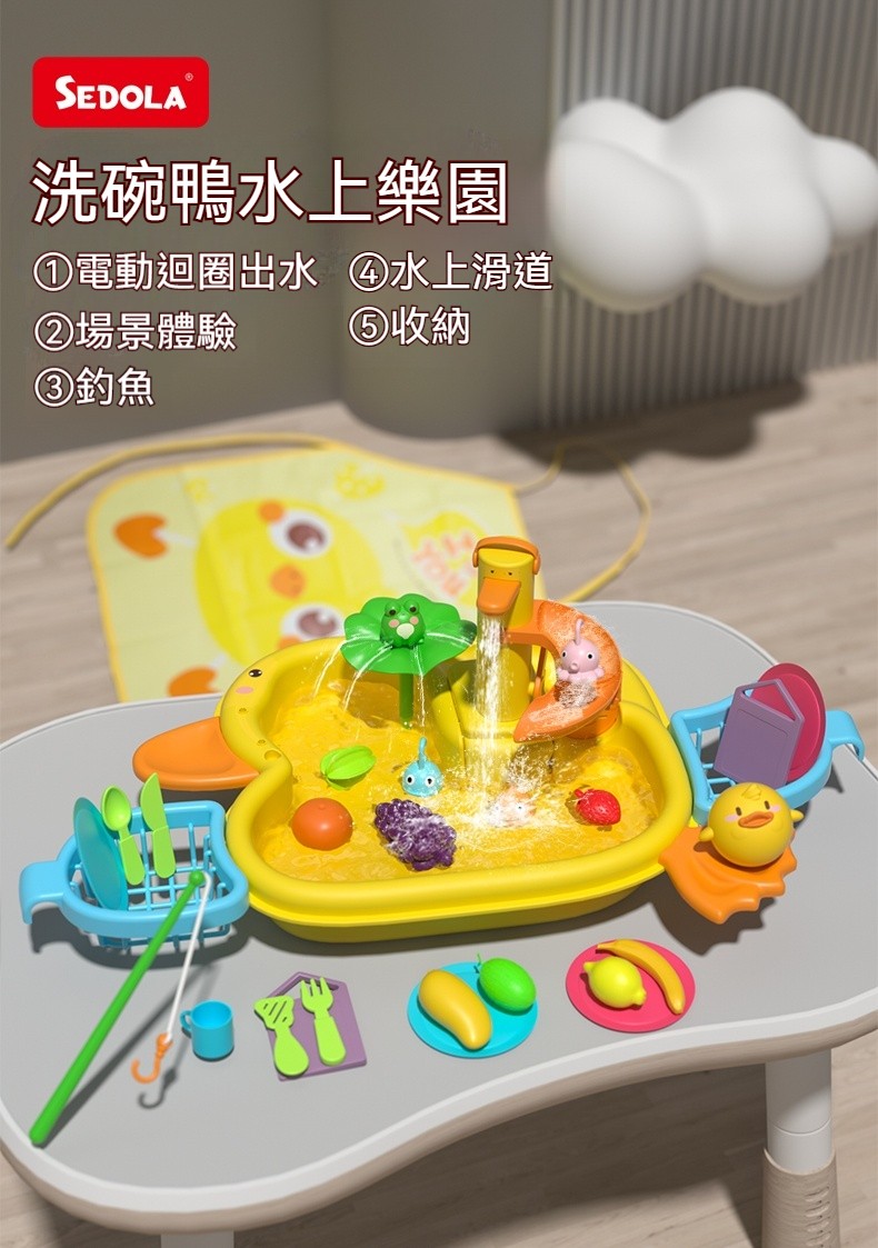 「洗碗鴨水上樂園」電動循環水+釣魚遊戲!玩水過家家,養成清潔好習慣