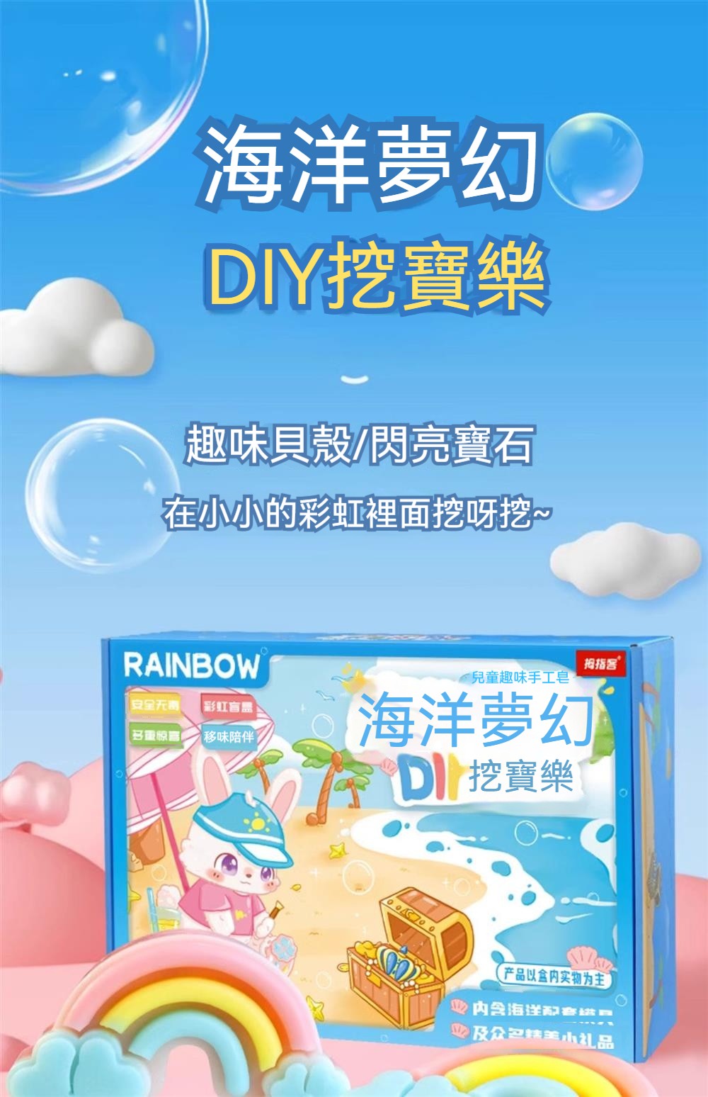 ✨海洋挖寶盒~囡仔撈到寶石眼睛發光!挖水晶、吹泡泡、做香皂,一盒玩透透✅挖寶探險✅水晶DIY✅泡泡魔法✅手工香皂