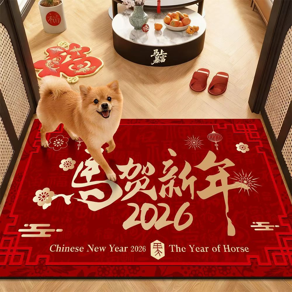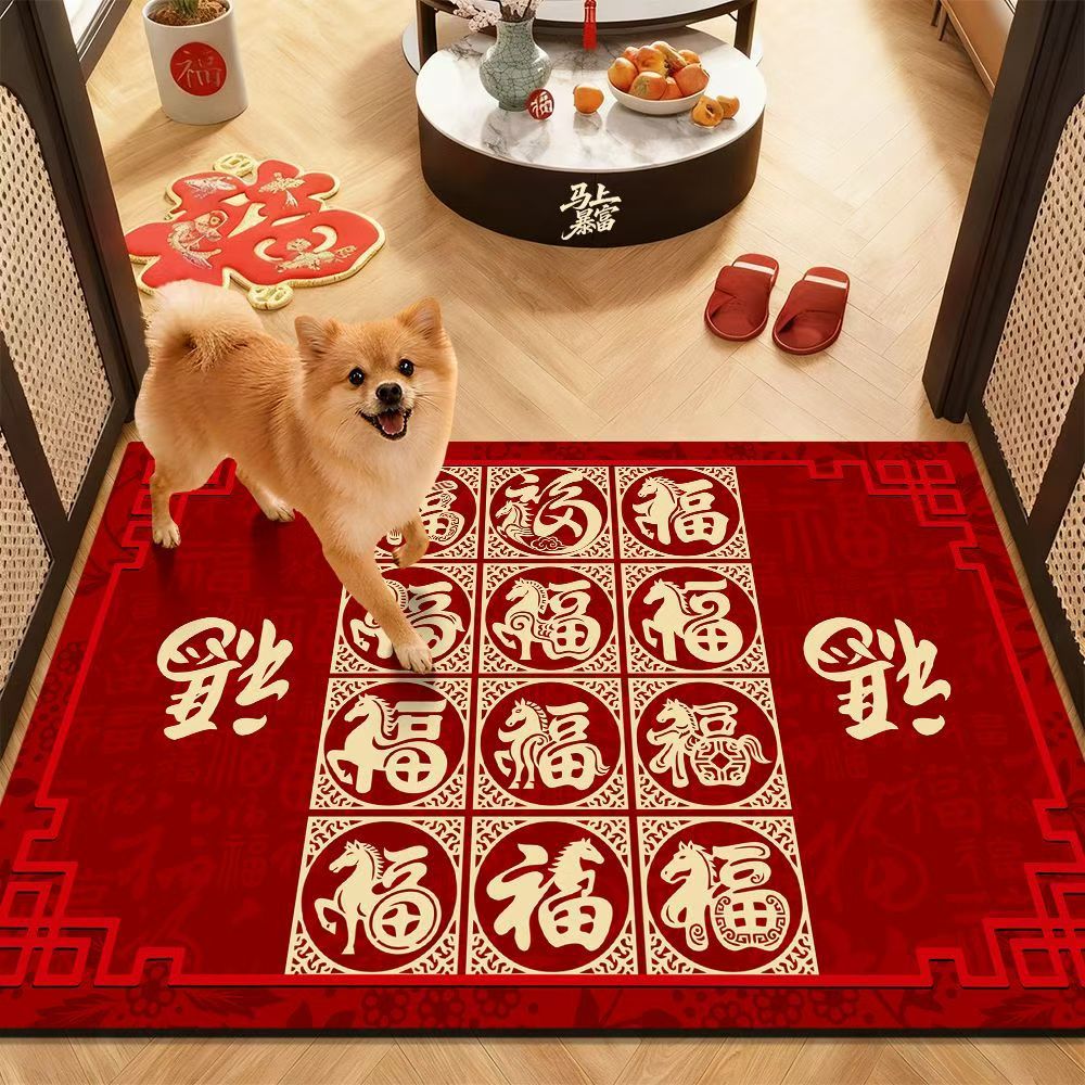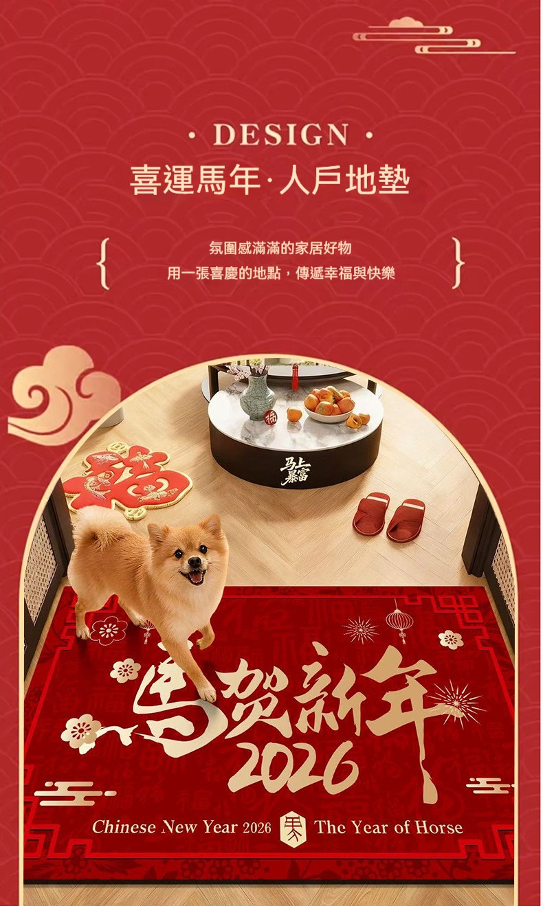 馬年開運地墊~一腳踏進福氣裡!防滑耐髒,厝門口變身吉祥風景✨✅ 點塑防滑底✅超短絨面設計✅7mm柔軟厚度✅可自由裁剪