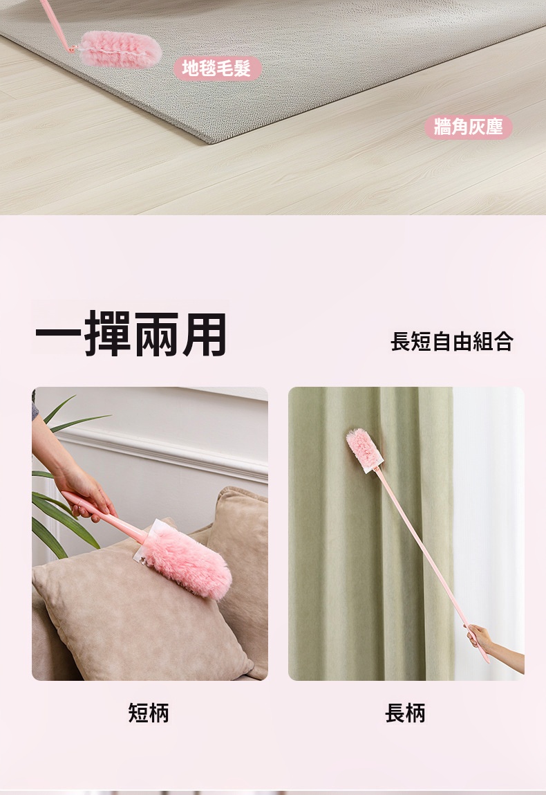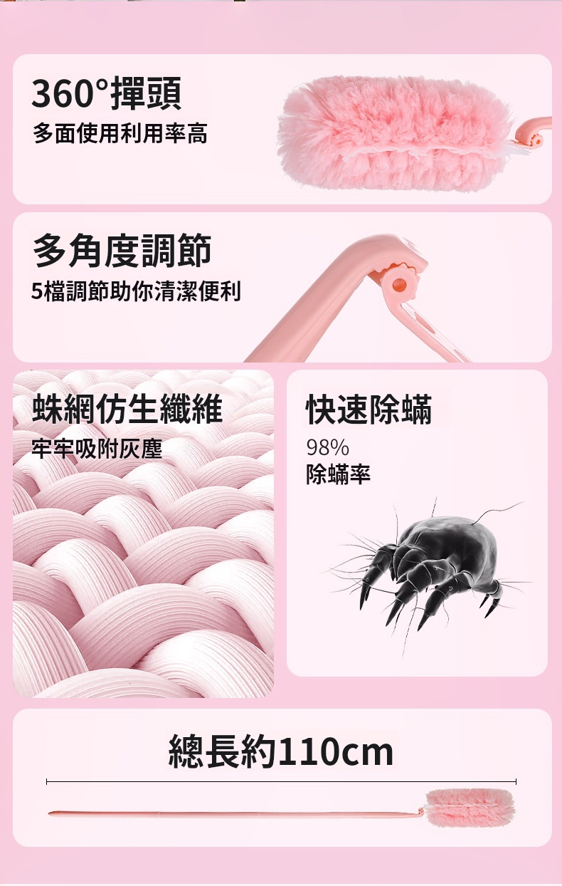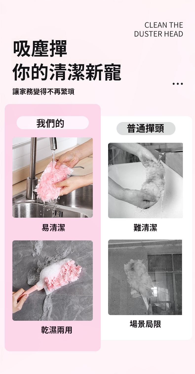 ✨清潔黑科技登場!360°旋轉除塵撣~五段調節、乾濕兩用,天花板窗縫從此撣一下就乾淨✅蛛網仿生纖維,灰塵一黏就上鉤✅蛛網仿生纖維,灰塵一黏就上鉤✅360°旋轉撣頭+五段調節手柄✅折疊收納,門後牆角省空間