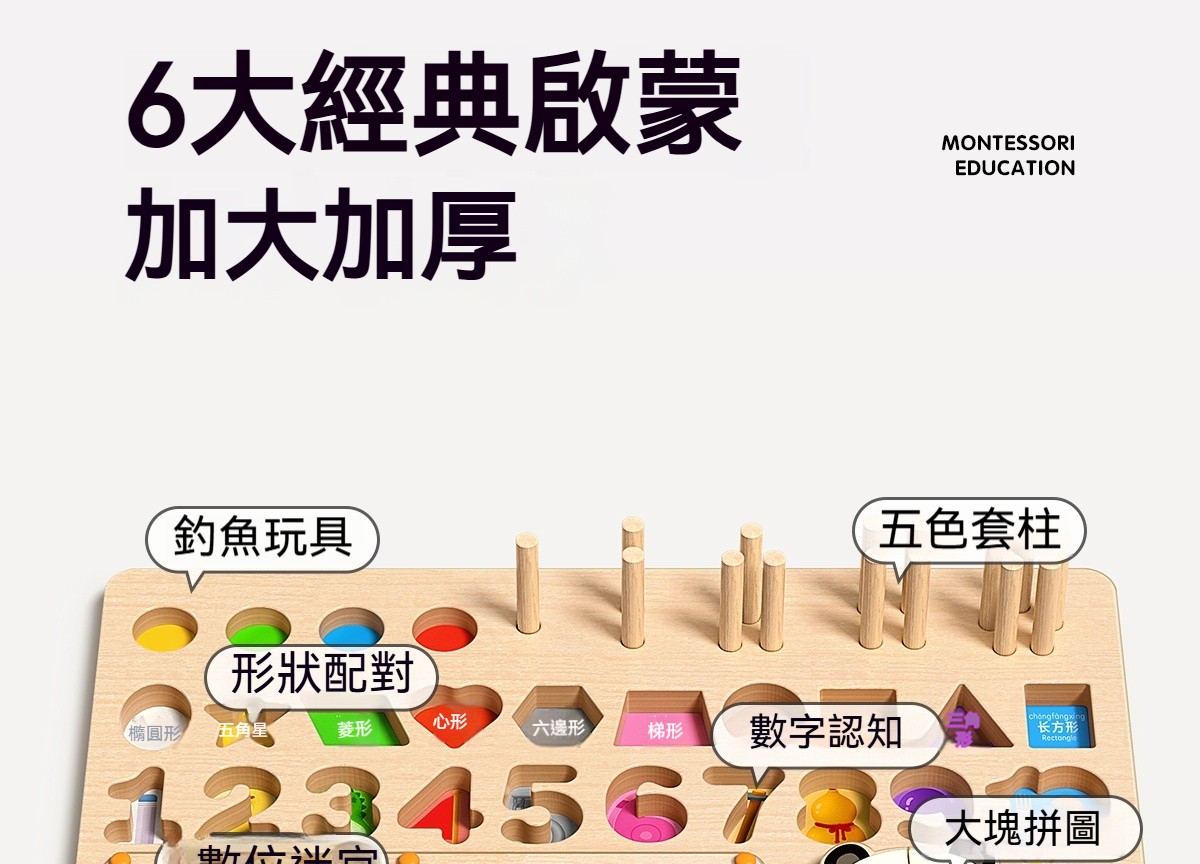「6合1蒙氏聰明板」玩出未來學霸!六大分區x安全設計,讓寶寶在遊戲中自然啟蒙