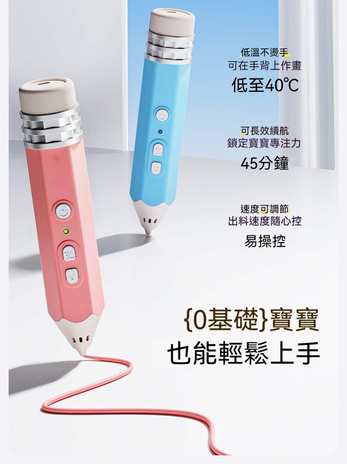 「兒童3D打印筆」低溫40°C安全認證!一畫立體成型,激發孩子的空間創造力✨