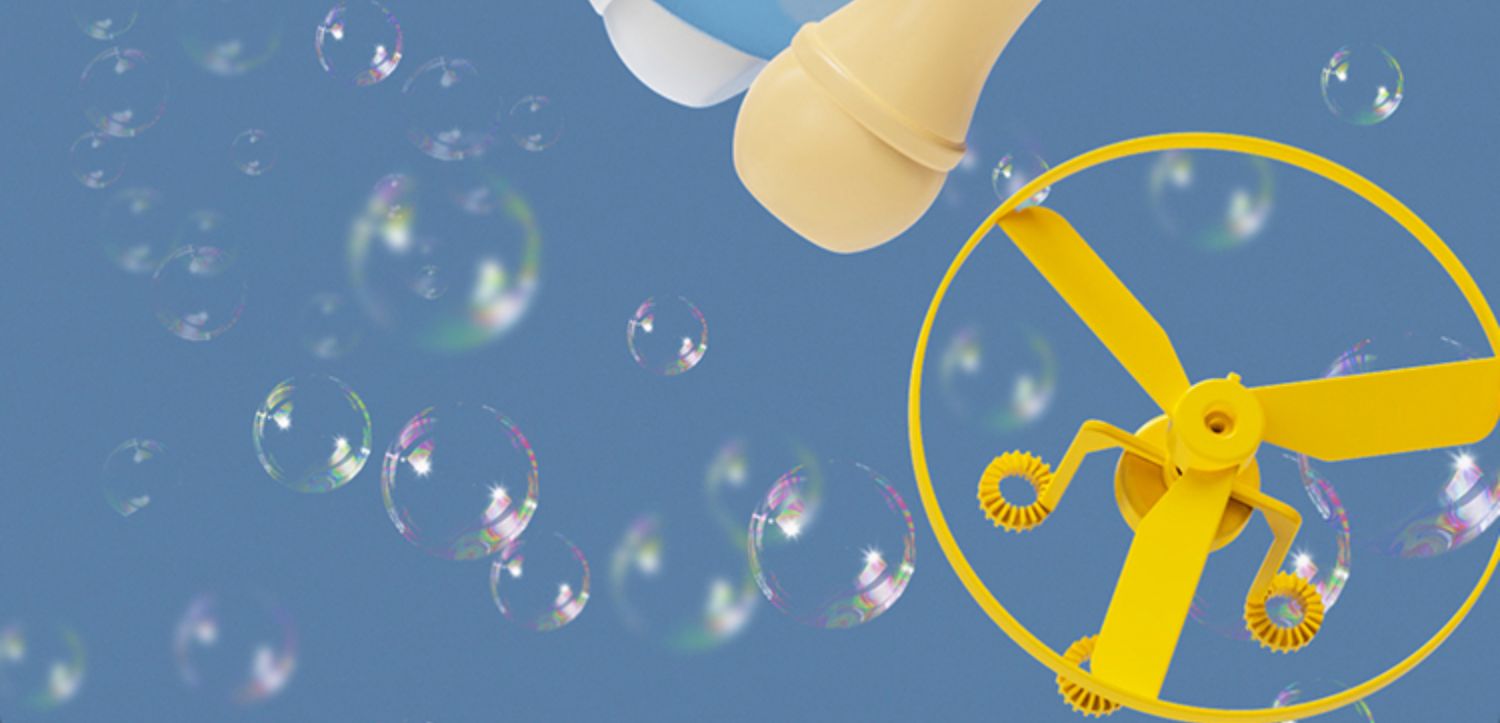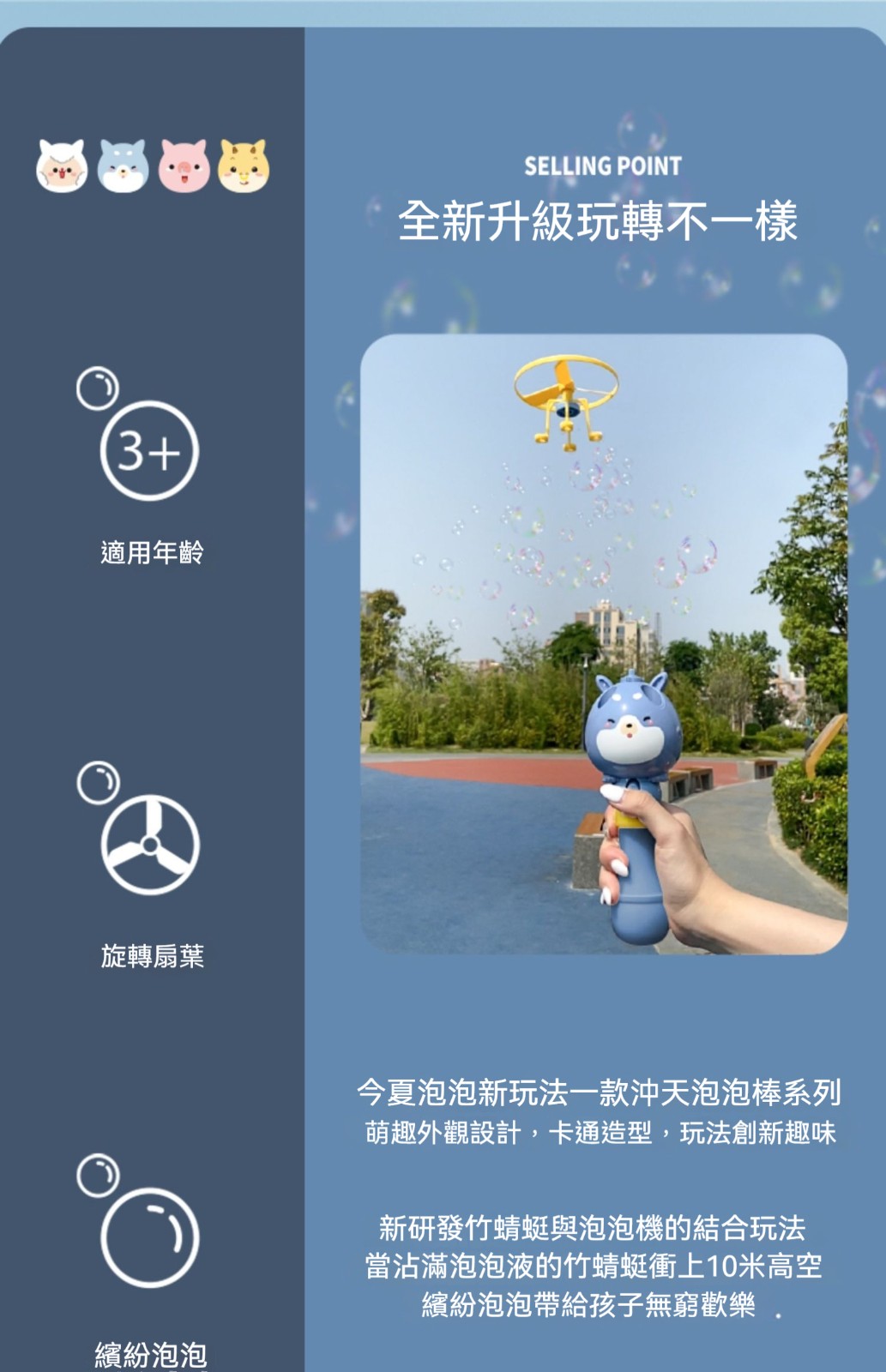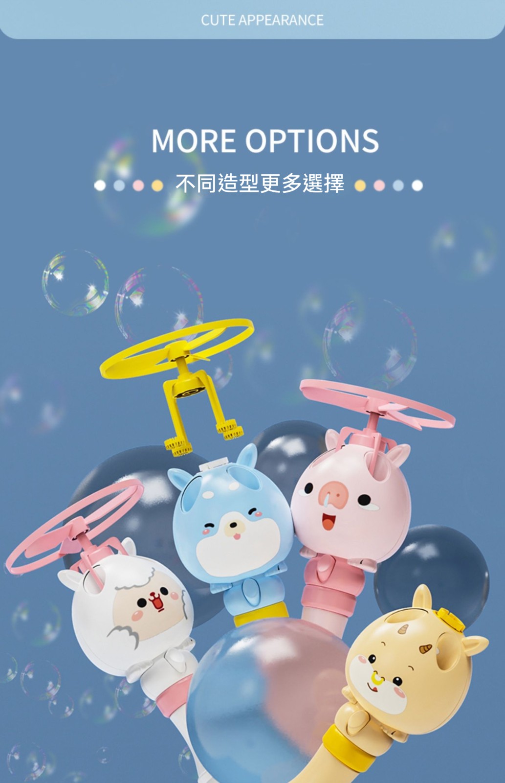 「萌系泡泡竹蜻蜓」沖天10米!一甩滿天彩虹泡泡~無電池防水設計,洗澡/戶外都能玩!