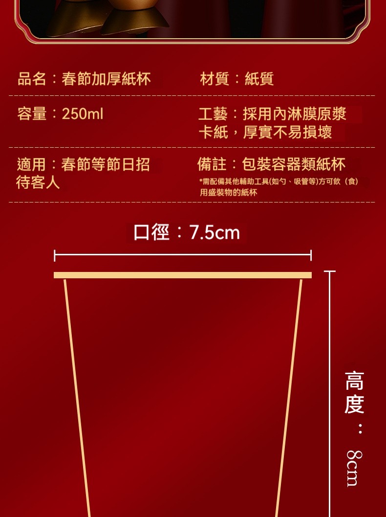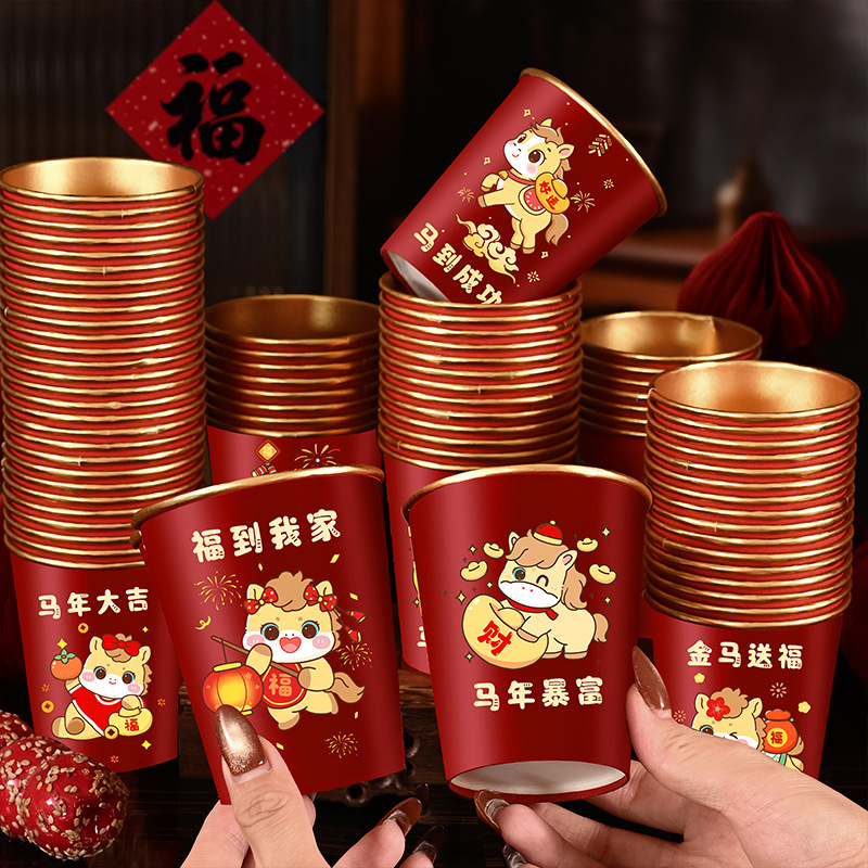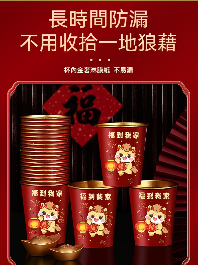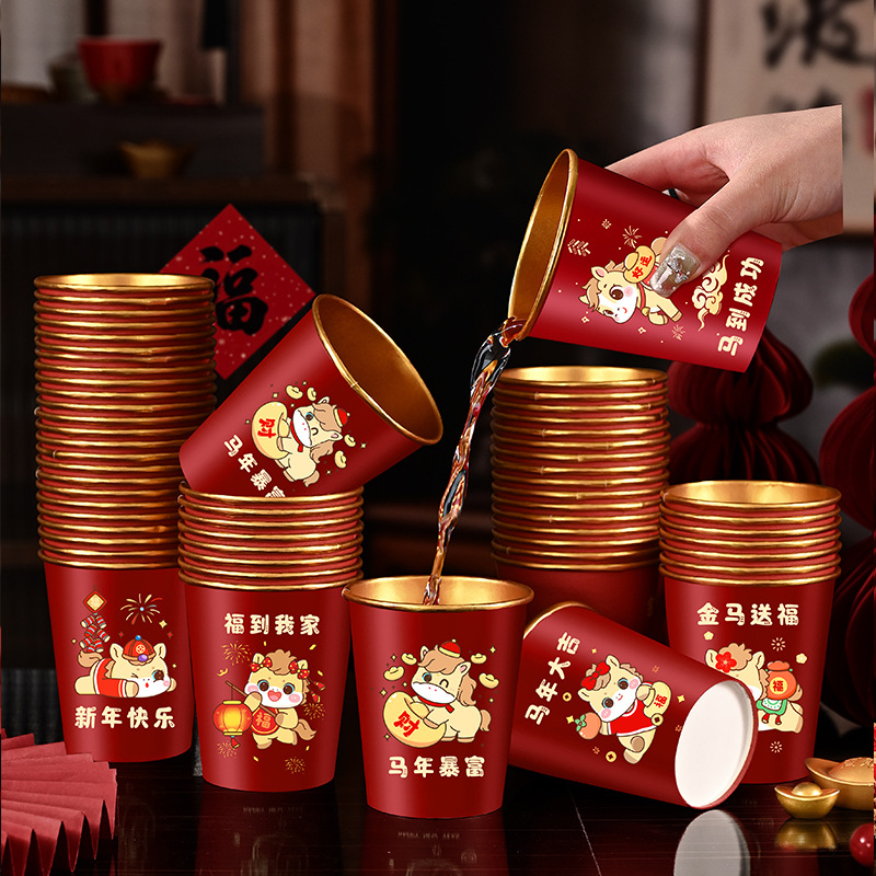2026馬年開春!這款「新春吉祥紙杯」加厚防漏、燙手不變形,讓團圓飯舉杯共慶更有質感✅ 食品級原生紙漿✅堆疊不易黏杯✅ 多款吉祥話