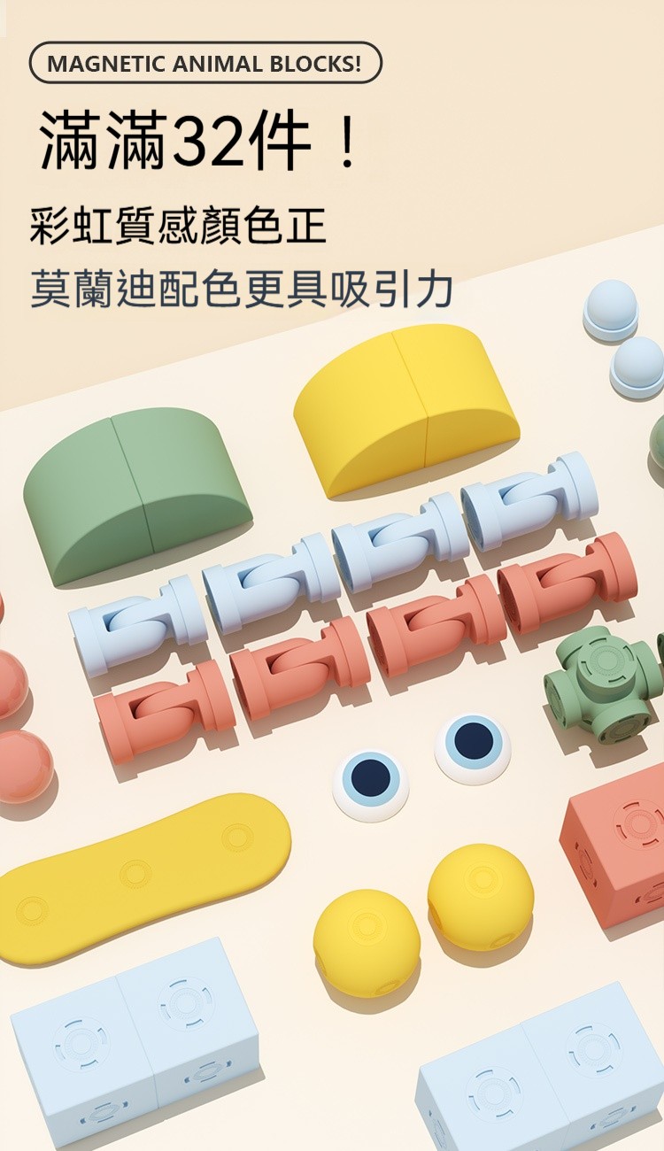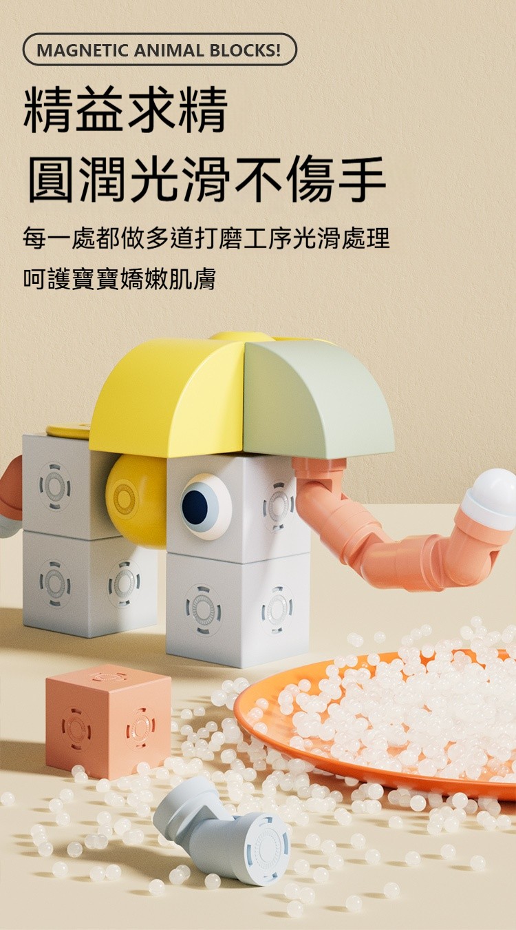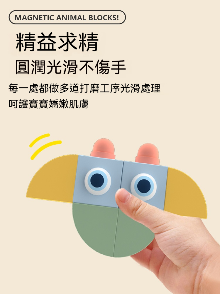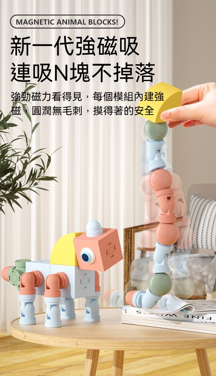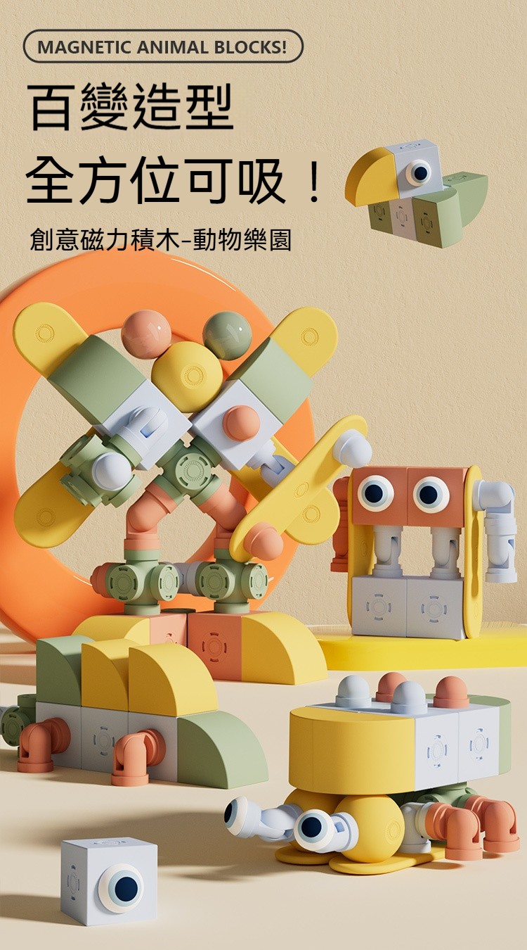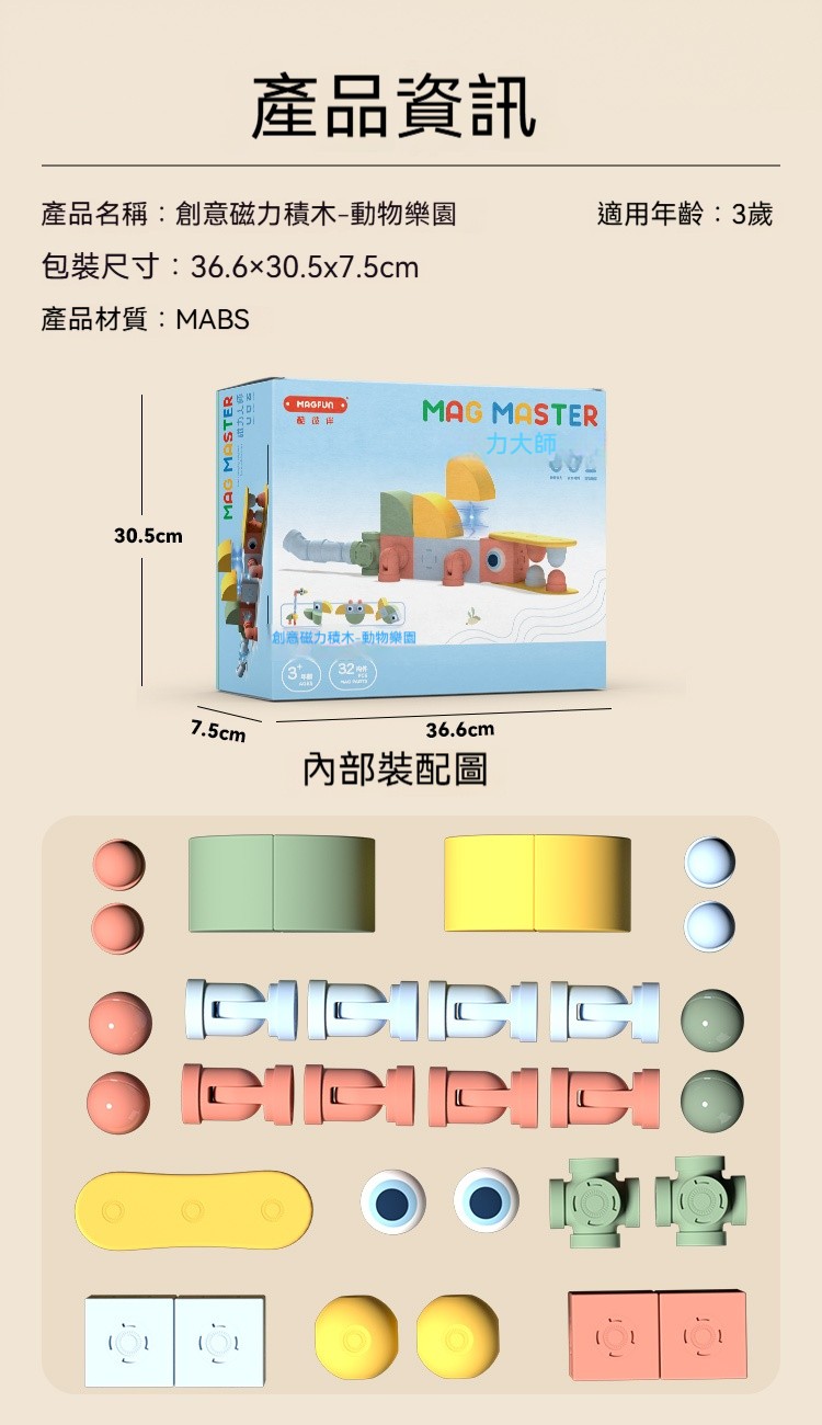 「動物樂園磁力積木」強磁360°秒吸!32件彩虹套組,從認知到創造一盒搞定