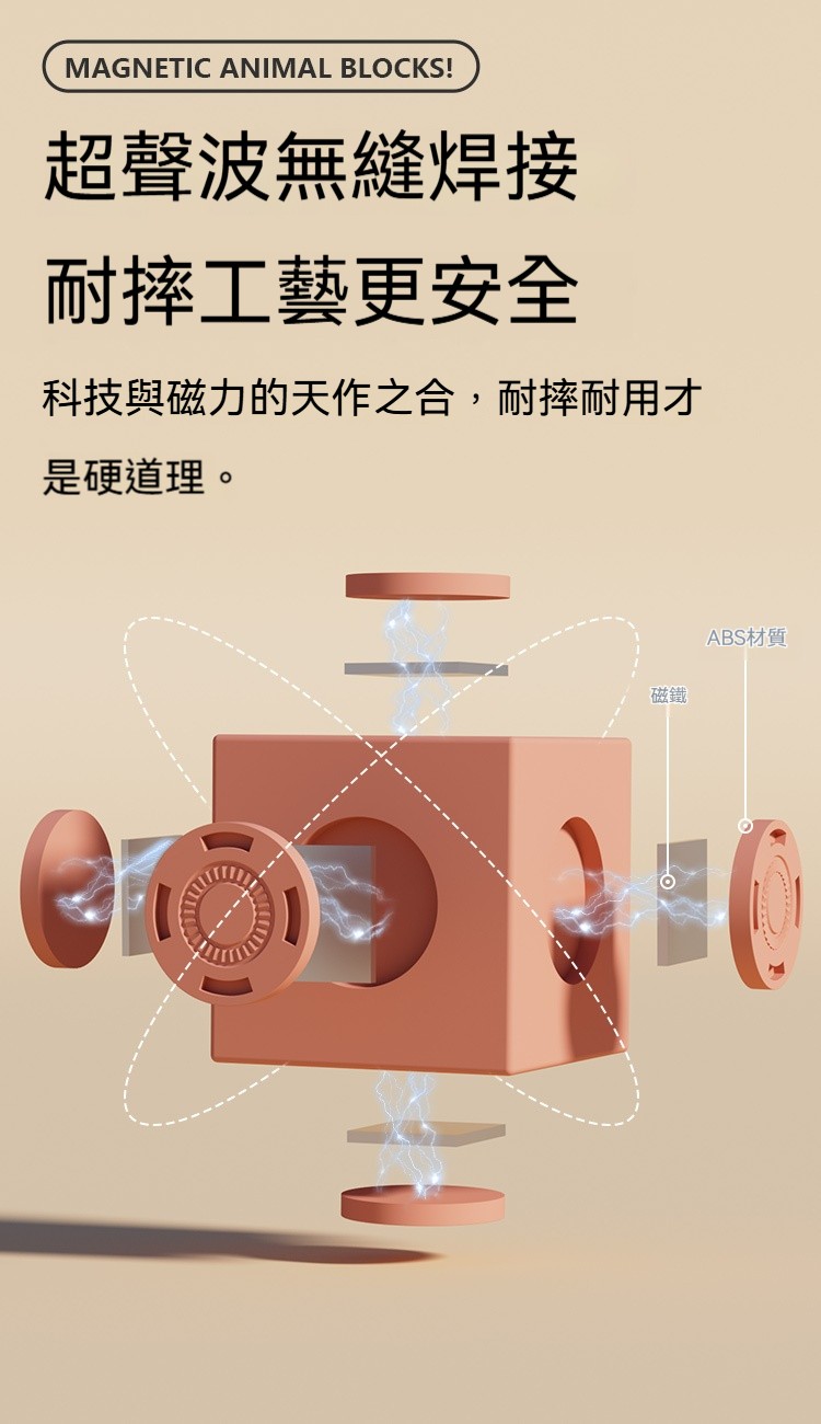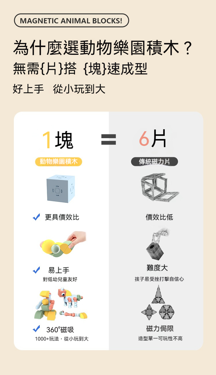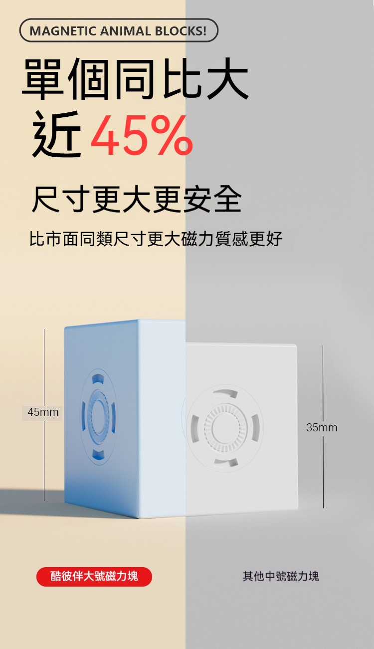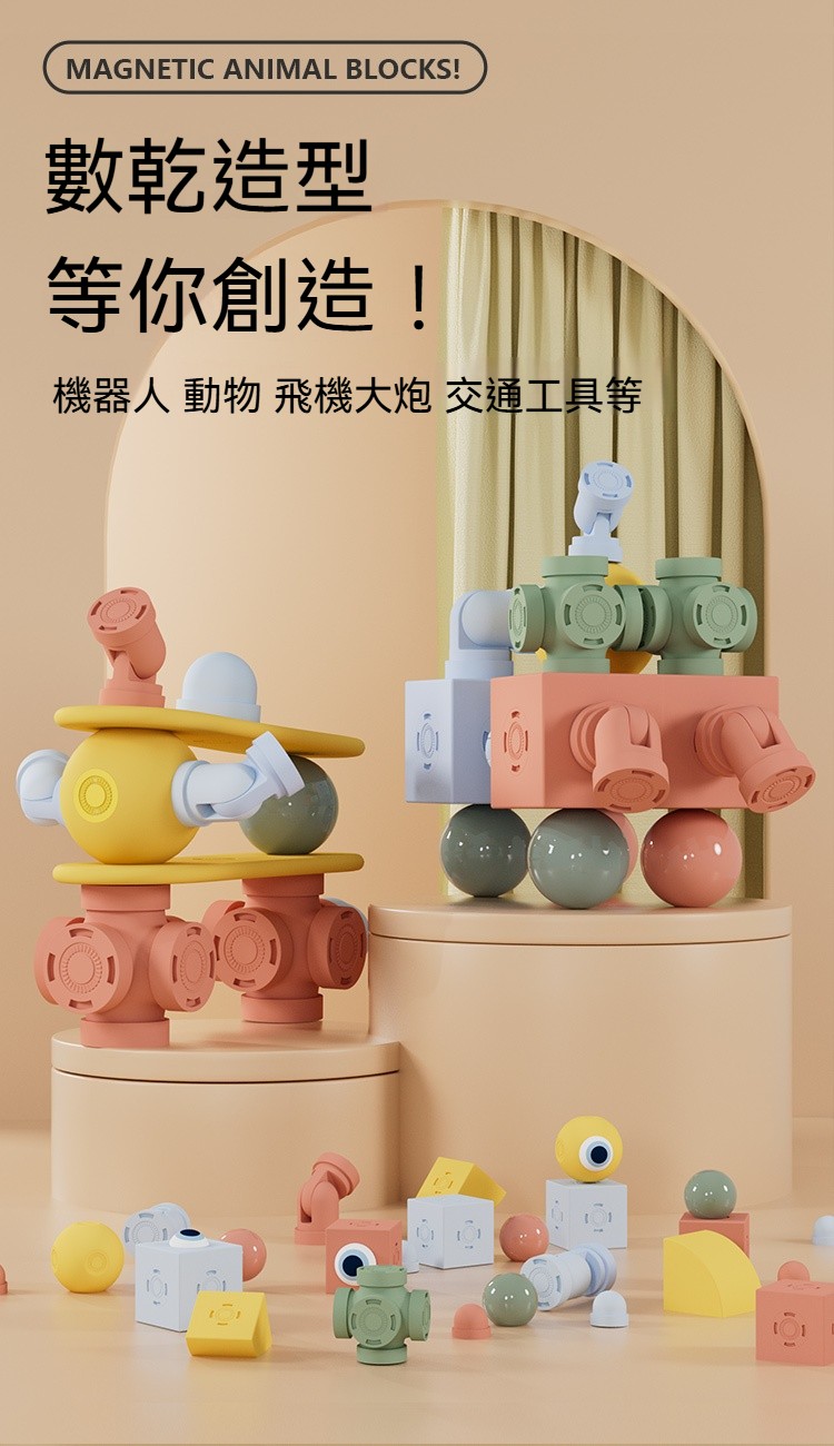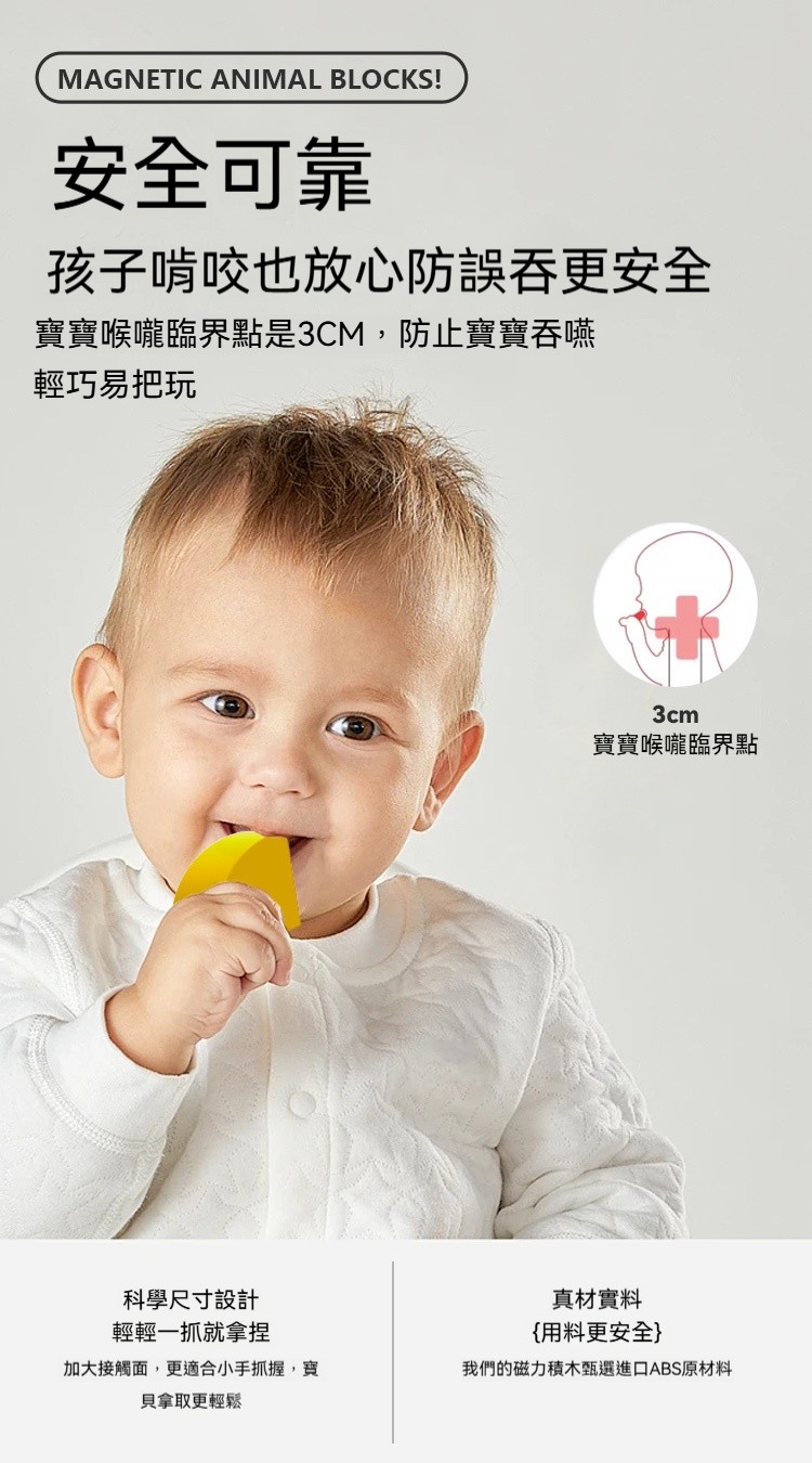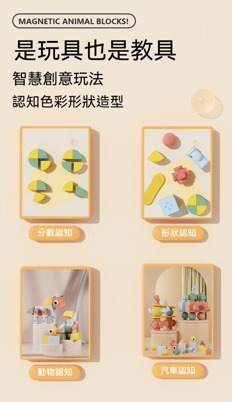 「動物樂園磁力積木」強磁360°秒吸!32件彩虹套組,從認知到創造一盒搞定