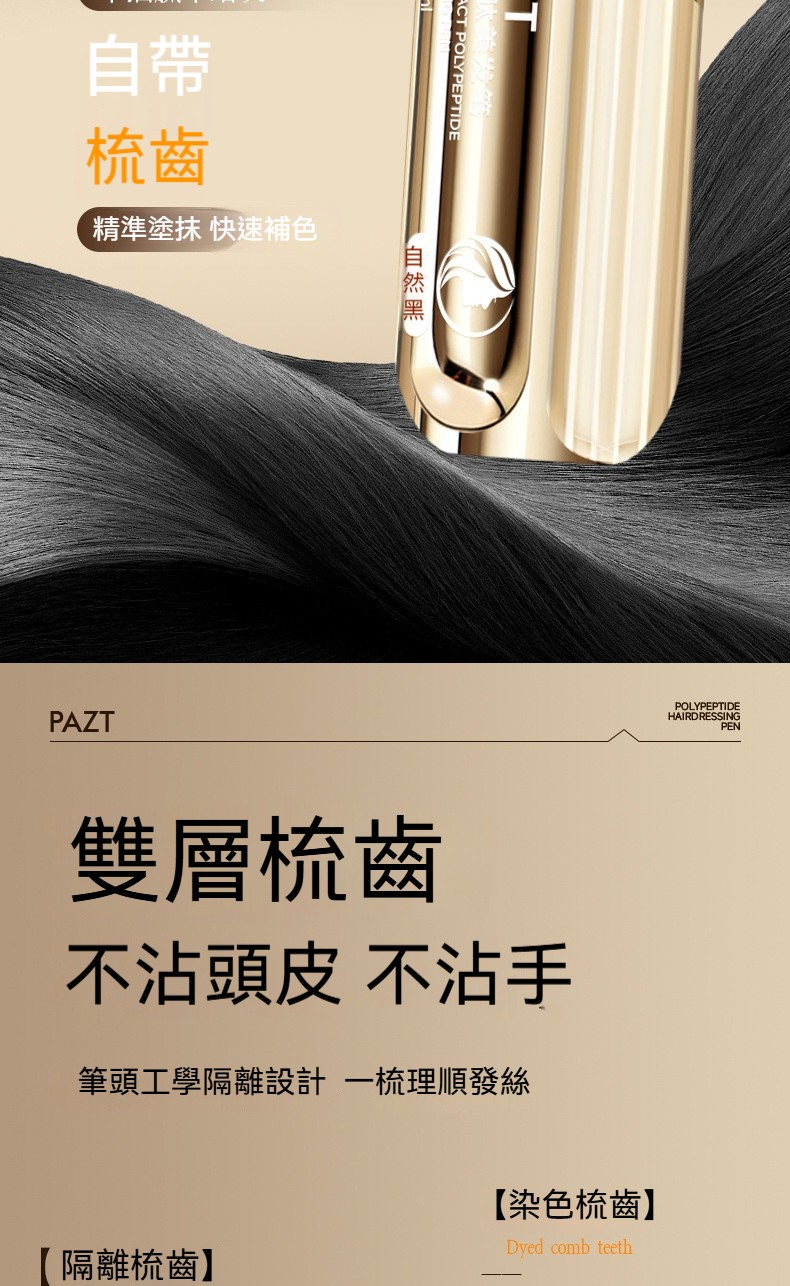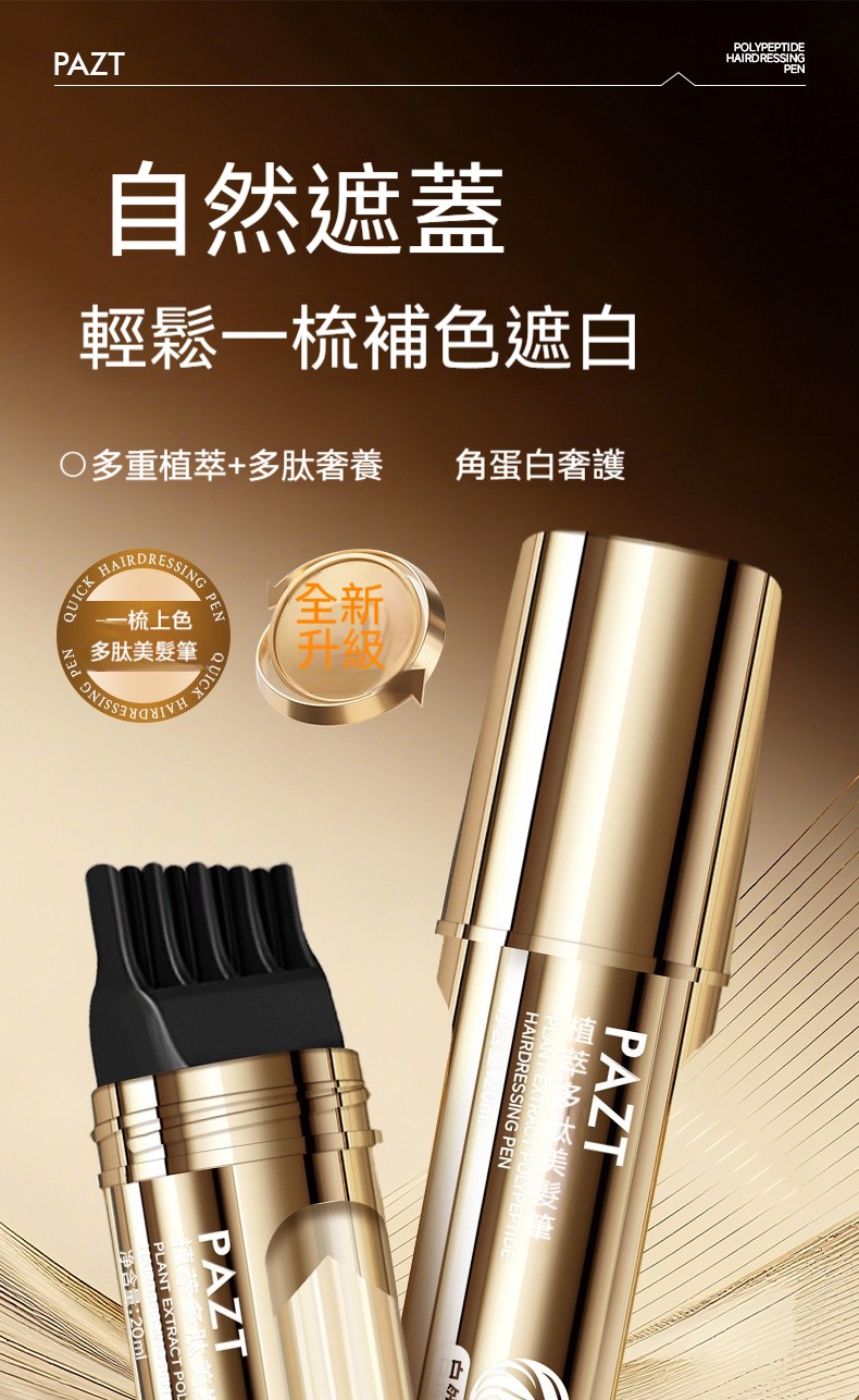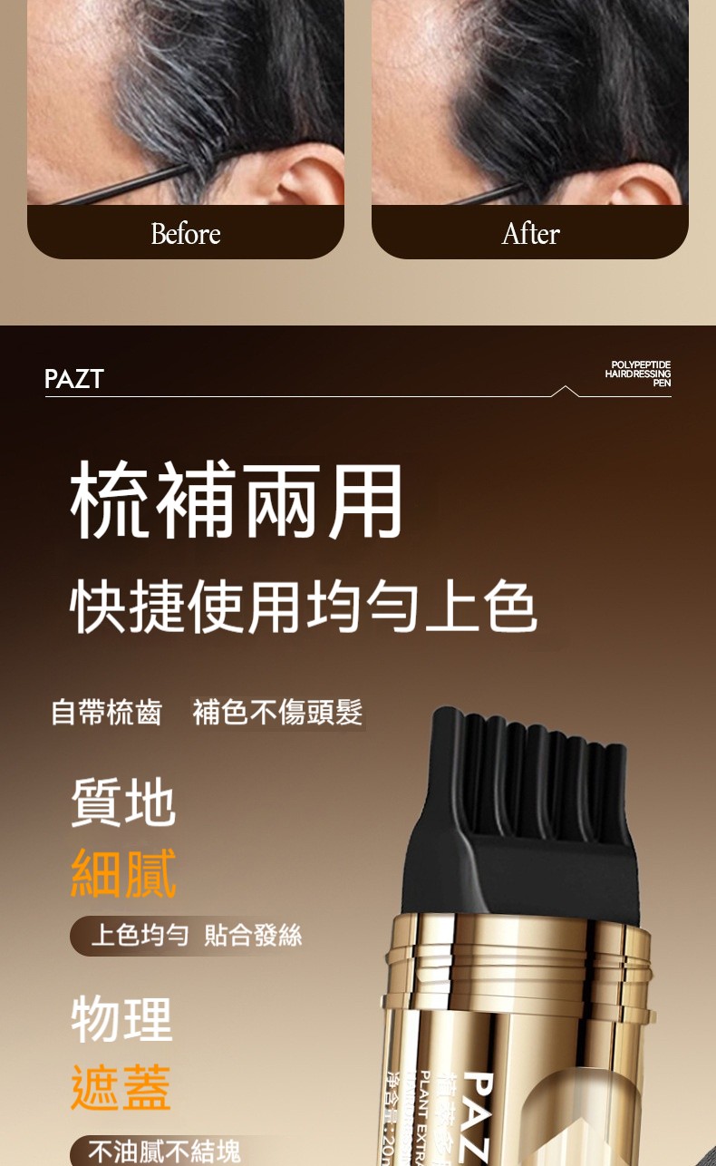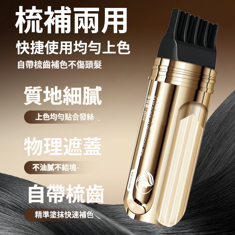 美髮遮白筆~輕輕一梳,白髮瞬間隱形!物理補色不傷髮,出門急救神器✨▸ 雙層梳齒結構▸ 植物萃取配方▸ 物理性附著