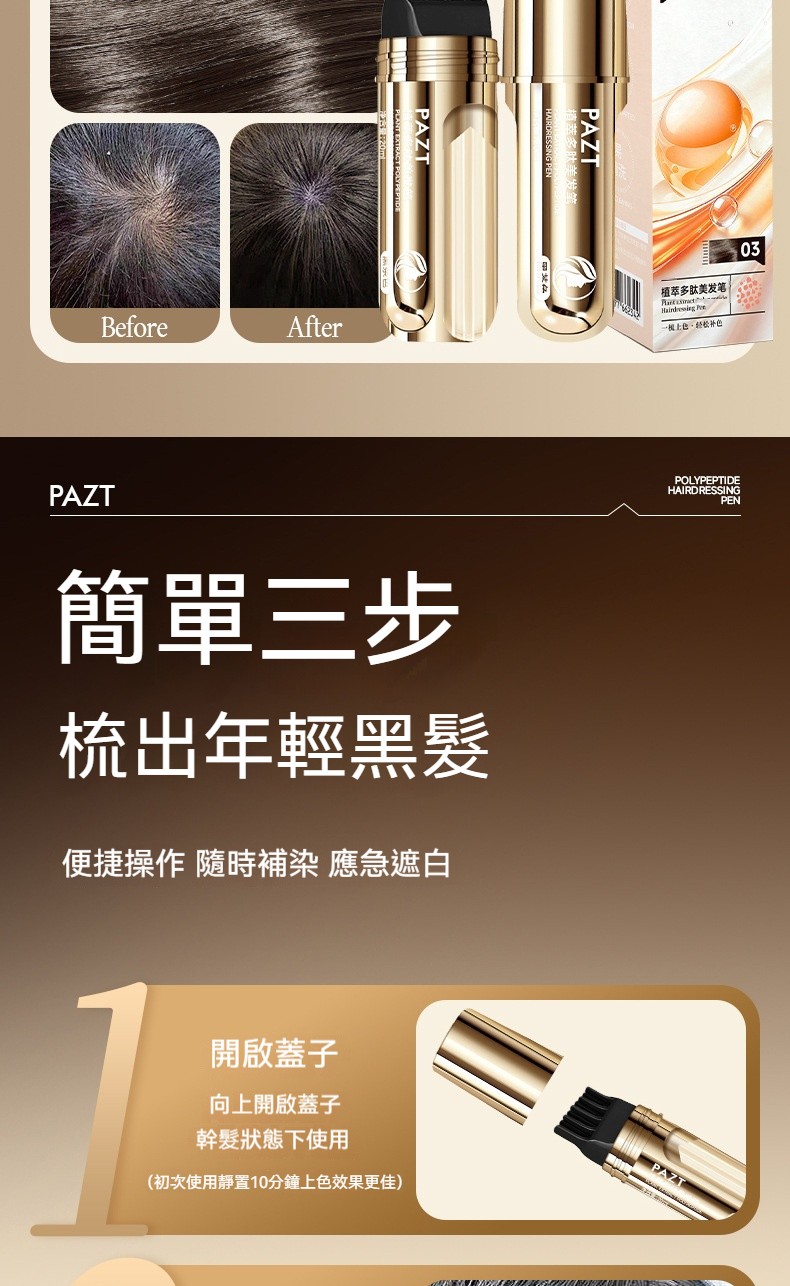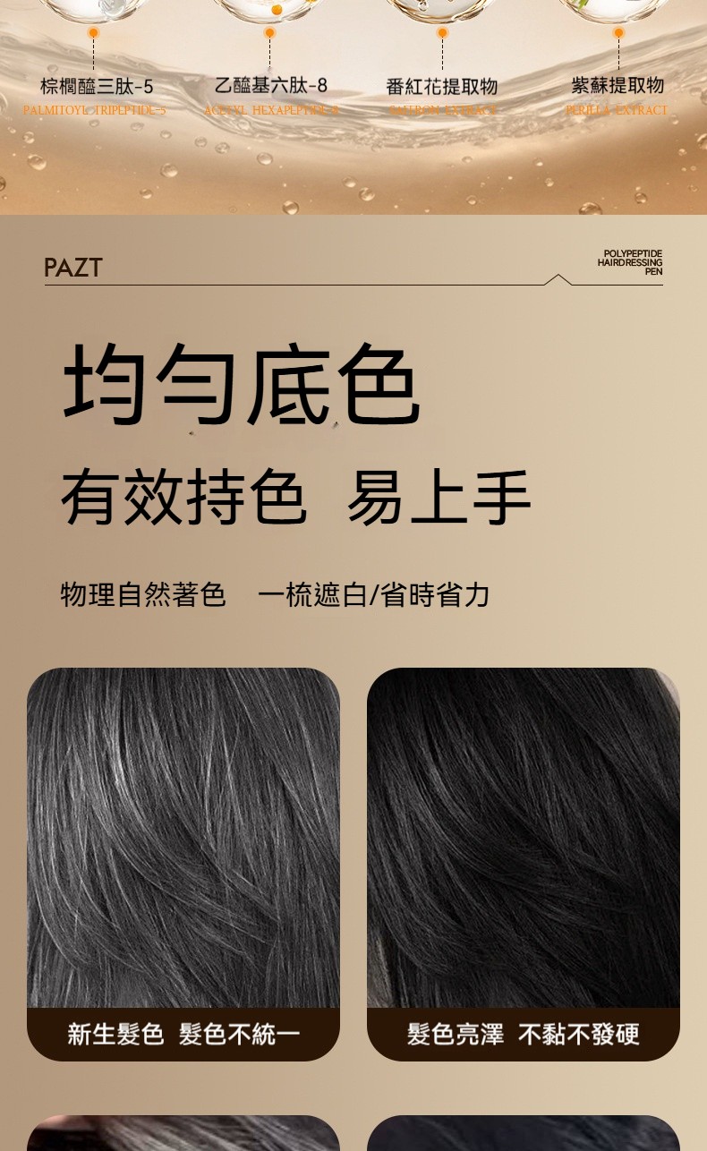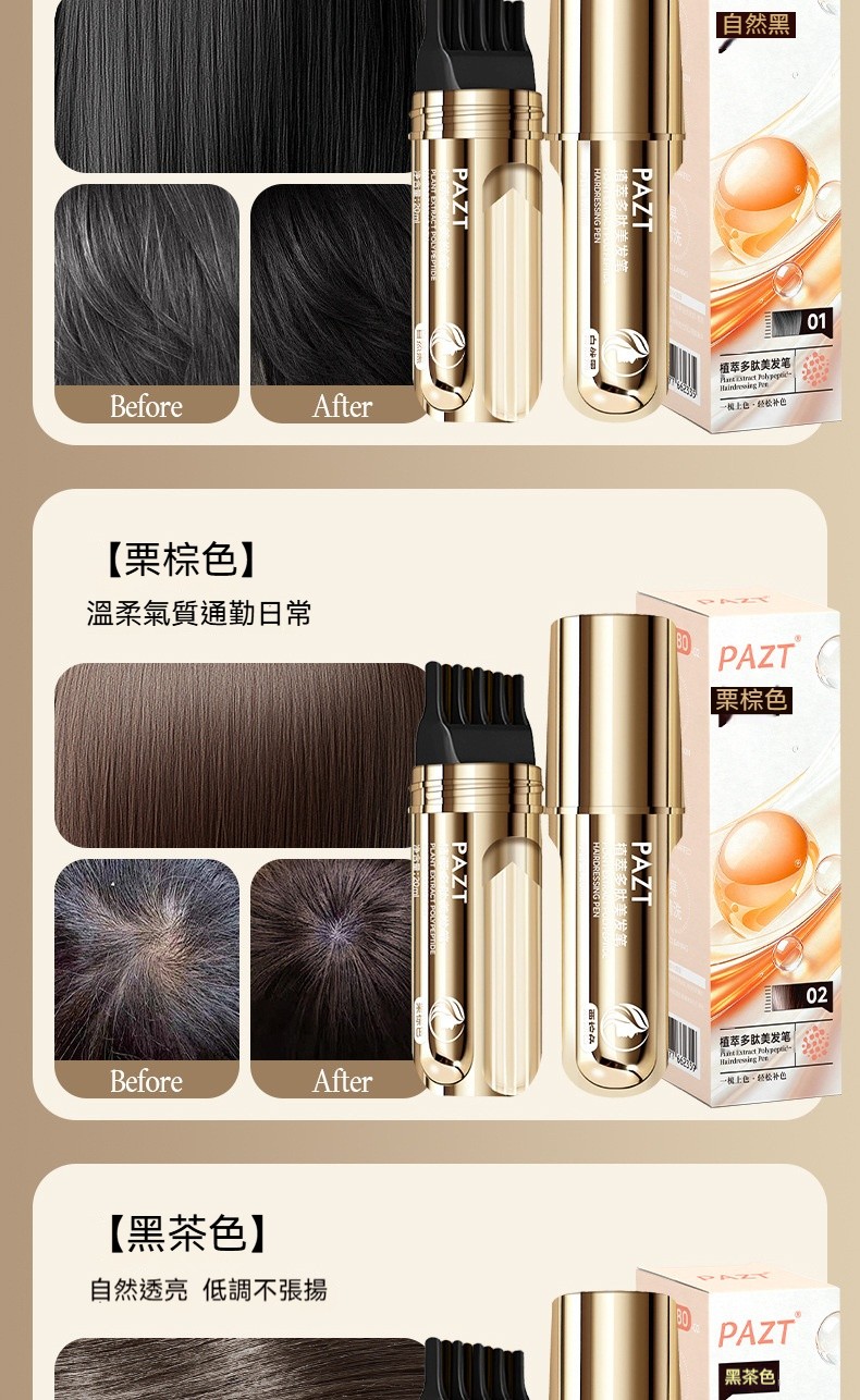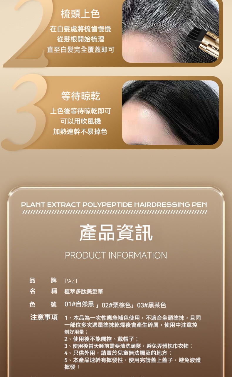 美髮遮白筆~輕輕一梳,白髮瞬間隱形!物理補色不傷髮,出門急救神器✨▸ 雙層梳齒結構▸ 植物萃取配方▸ 物理性附著